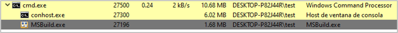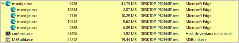 - Realizar tareas de caza de amenazas en busca de procesos sospechosos o que no fueron iniciados por el usuario, principalmente de cmd.exe, conhost.exe, MSBuild.exe y explorer.exe.