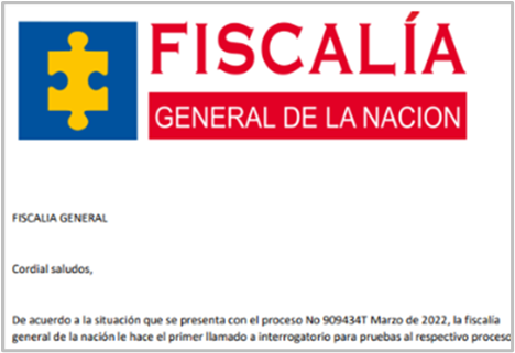 Esta campaña fue investigada a partir de publicaciones realizadas en fuentes abiertas,en las cuales señalan que el método de distribución utilizado en esta campaña es mediante correos de phishing que utilizaban como pretexto una supuesta cita para interrogatorio suplantando a la Fiscalía General de la Nación de Colombia.