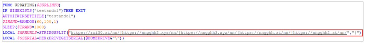 Figure 10. Fragment of the malicious AutoIt script (download and execution)