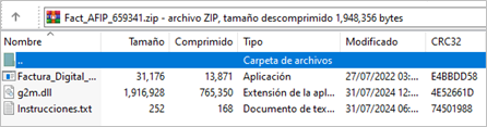 3.txt: plain text file with the necessary instructions to make the user unzip and execute the file Factura_Digital_AFIP.exe.